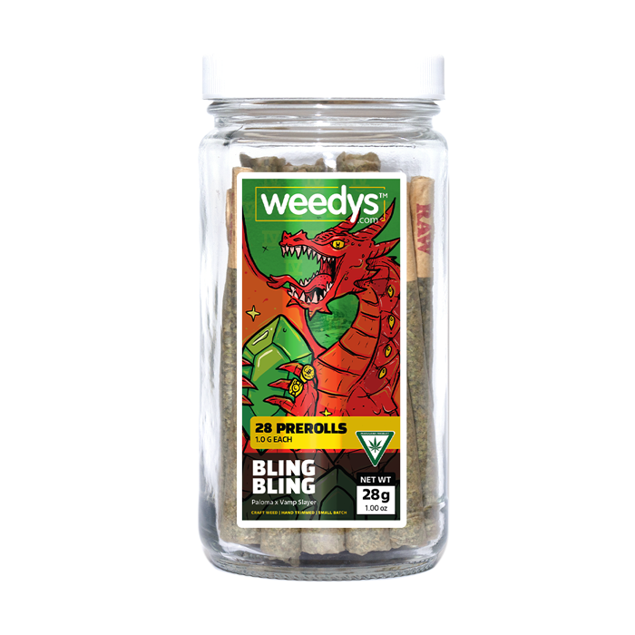 Here’s a complete breakdown of the 28 g Bling Bling Prerolls pack: