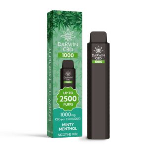 Darwin CBD 1000mg Disposable Vape 2500 Puffs is a disposable vape device infused with CBD. Powered by a 1500mAh built-in battery, the Darwin 1000 offers up to 2500 puffs (approx). Each device is pre-filled with 7.5ml of e-liquid in a 1000mg CBD strength. There are 10 flavours in the Darwin range to choose from, each with it’s own unique twist. As a disposable device, there is no need to refill or recharge the Darwin 1000 giving you a completely hassle free way to vape CBD.