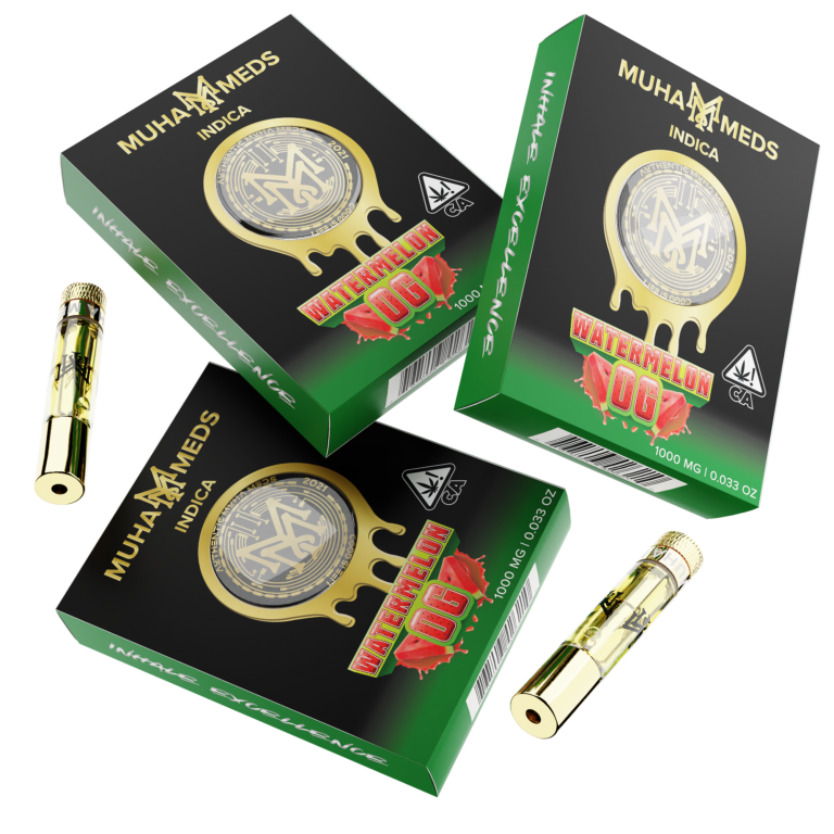 Muha Meds Watermelon OG product. Muha Meds is known for producing cannabis vape cartridges, and Watermelon OG is one of their popular strains.